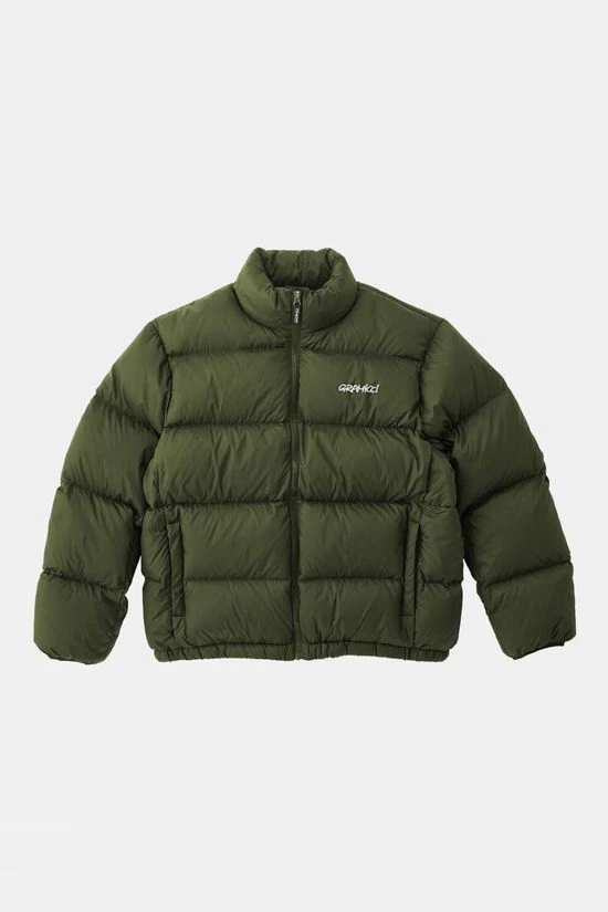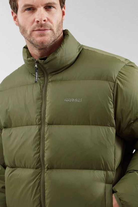A voluminous, short-length down jacket made of high density, soft-textured taffeta. Gramicci’s Down Puffer Jacket is made from a superb nylon that gives a soft, cottony feel and natural, clean look. The material provides outstanding durability as well as being incredibly lightweight and breathable. Additional features of the jacket include two lofty handwarmer pockets, a full centre zip for protection from the cold and the signature gramicci logo on the chest for style.
