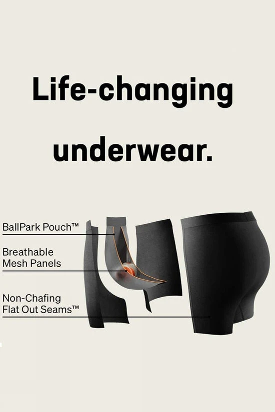 The Kinetic HD style is a stealth superhero; incorporating comfort, support, and security to enhance your movement. Taking a 360-degree view of the body, Saxx consider fit, feel and function, and use nine panels of fabric to create three-dimensional shaping around your glutes, thighs, quads and hamstrings, including the built-in mesh panels of the BallPark Pouch. Ideal for up-tempo training, carido, recreational activities or just lounging about on the sofa, make the Saxx Kinetic HD Boxer Brief your new everyday go to.